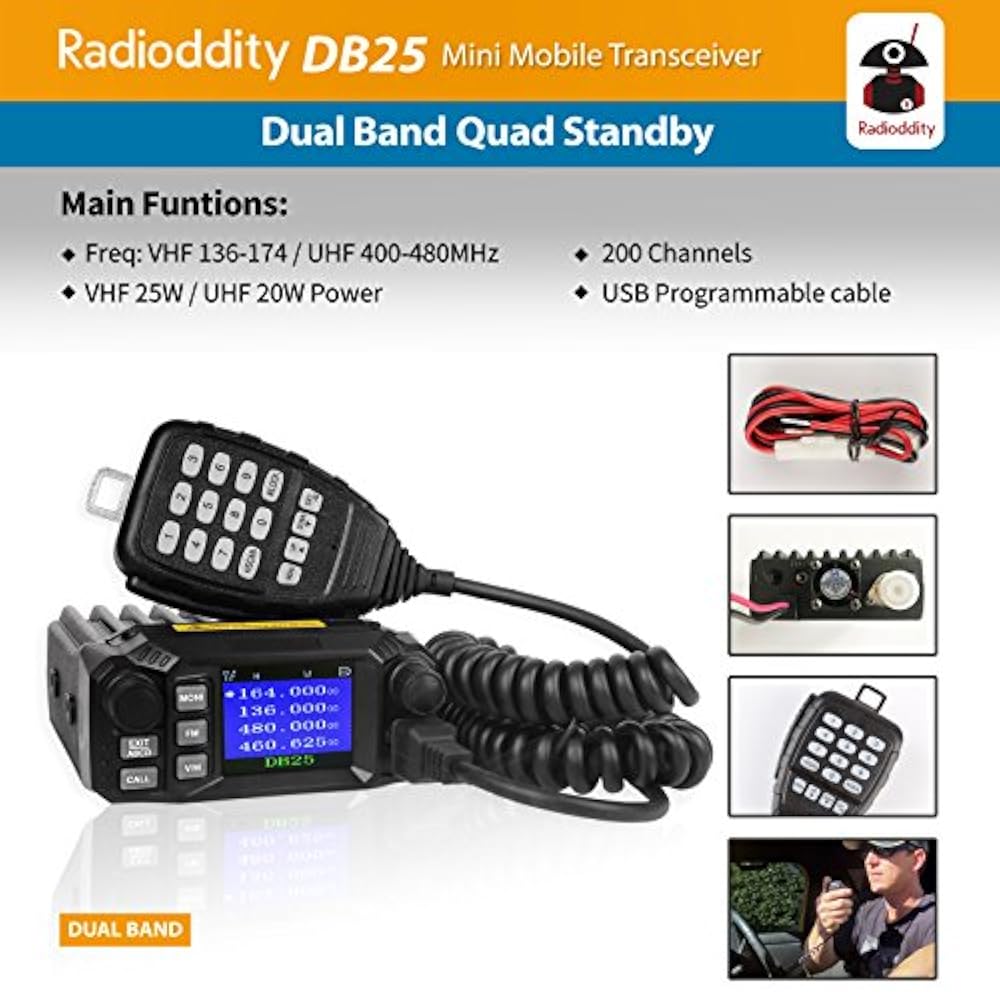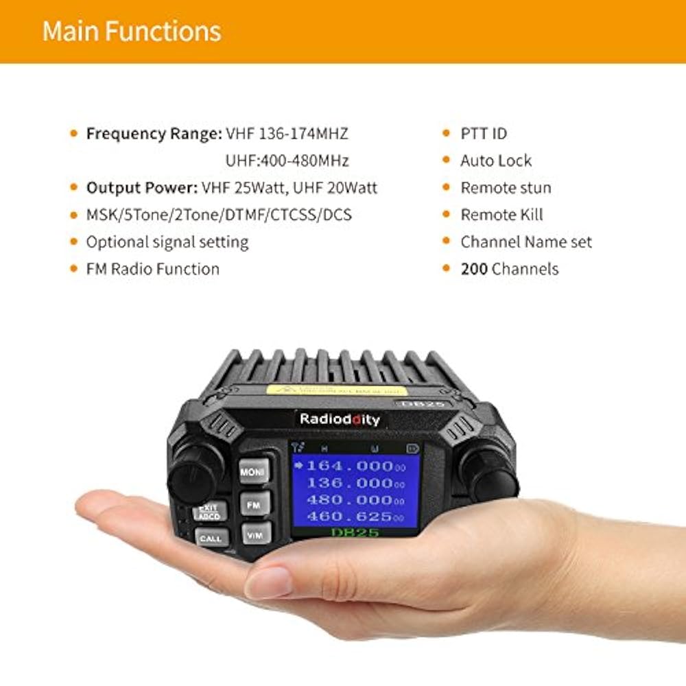 Múltiples funciones: Radioddity DB25 Pro es el último modelo de radio de coche de Radioddity, que cuenta con modo de visualización sincronizada doble, ajuste de ganancia de audio de micrófono, función de alarma, función DTMF (2/5 tonos), apagado automático, ajuste de edición de modo de canal, escaneo automático, reanudación de escaneo, escaneo de frecuencia variable, tiempo de retardo de reloj cuádruple, modo de privacidad aleatoria, tabla de 25 W/10 W, etc.