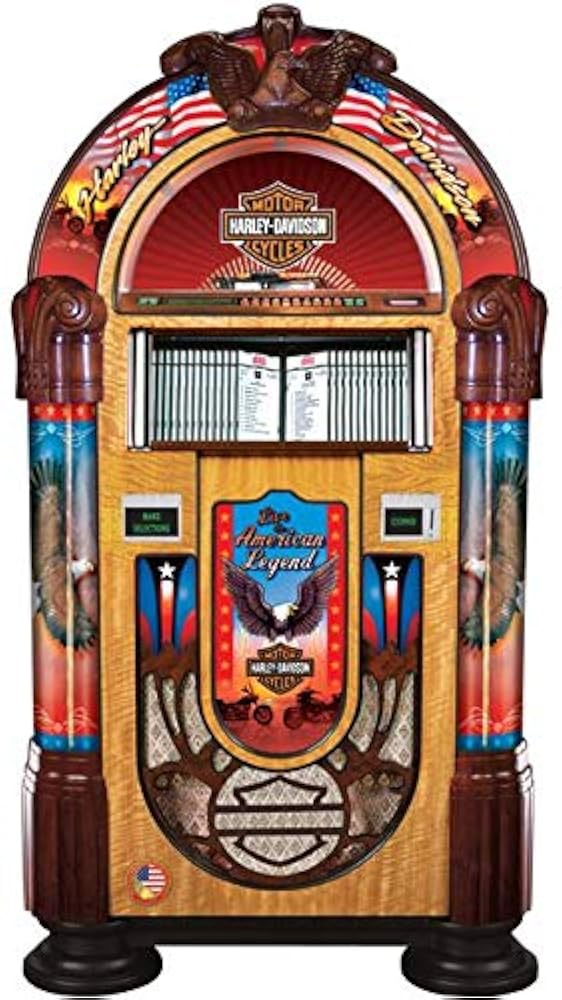 Con licencia oficial de la Harley-Davidson Company, este clásico CD-6 Jukebox ha capturado perfectamente el temperamento americano.