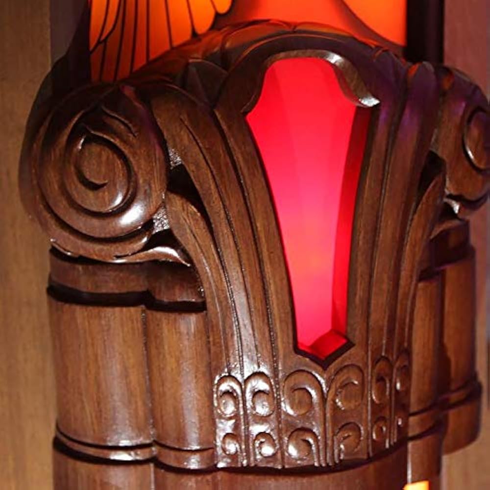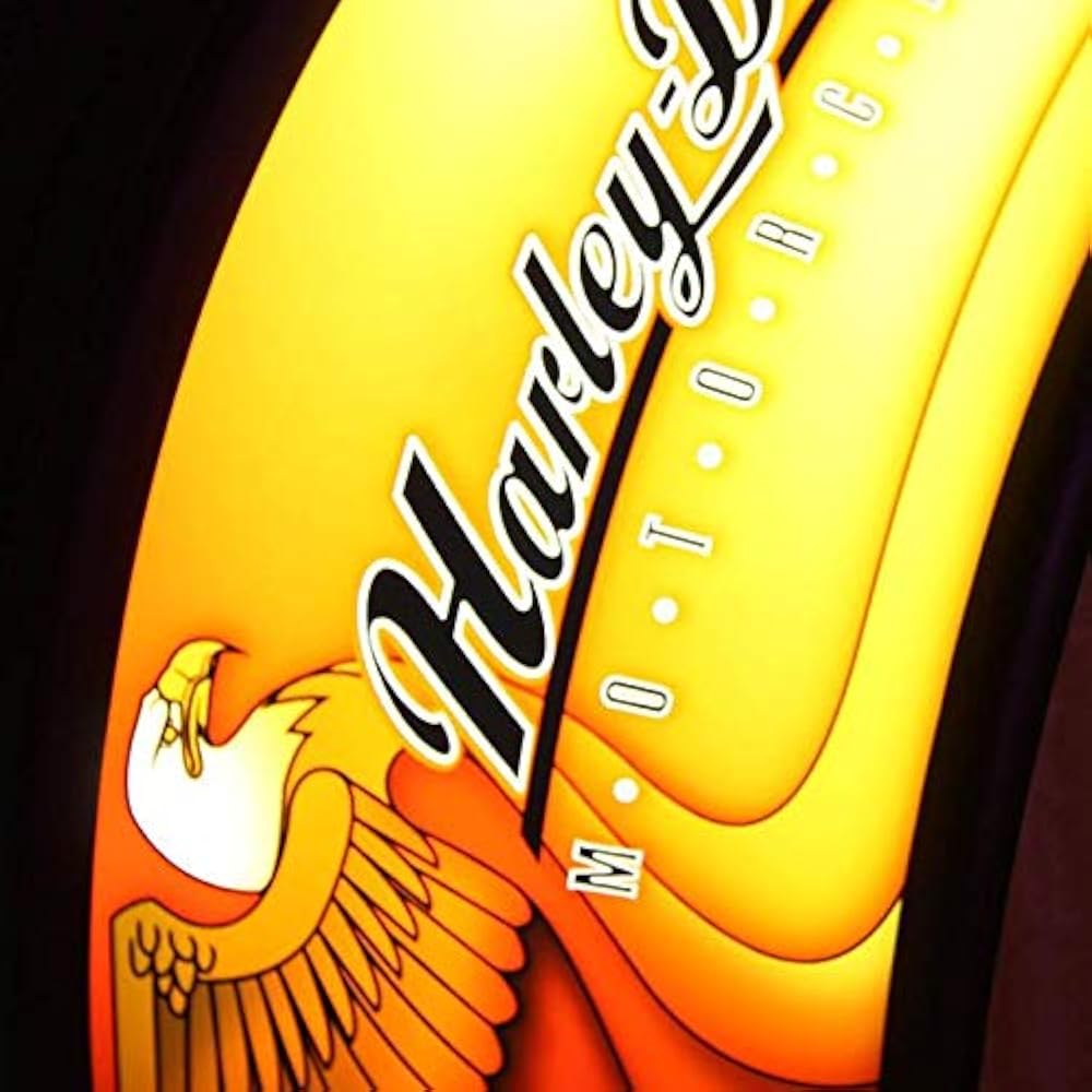 Dos águilas, el emblema de los Estados Unidos, se deslizan desde las pilasteras, y un tercer águila adorna el panel central, acompañado de dos motocicletas Harley-Davidson. El robusto personaje de Harley-Davidson se afirma con iluminación de arco, y cuenta con paneles de vidrio iluminados personalizados.