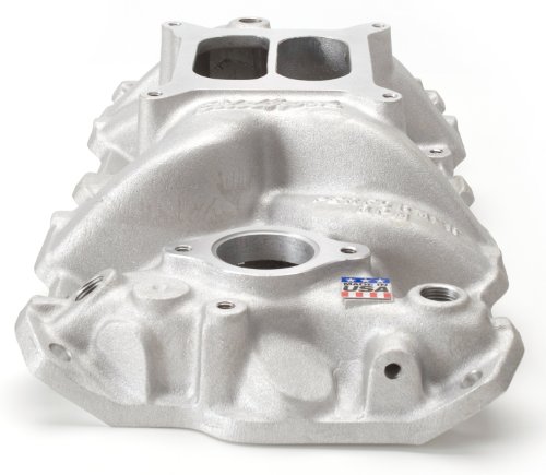 The Edelbrock Performer RPM Intake Manifold is intended for high-performance street or competition engines that run up to 6, 500 RPM with maximum power. The front height of the manifold measures 4. 20 and the rear 5. 25. The Performer RPMs are dual-plane, high-rise intakes with a 180 degree firing order. This manifold produces incredible top-end horsepower while retaining good throttle response. The Performer RPMs have larger plenums and runners to match the free-flowing exhaust, high-lift cams and other modifications of a high output engine. It is not for emissions-equipped engines. A Performer RPM intake gives you the ultimate in street high-performance. It provides power like a single-plane and throttle response like a dual-plane.