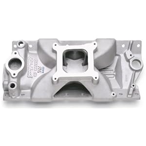 The Edelbrock Vortex Performer Intake Manifold is designed for square bore flange (non-EGR) and is intended to replace the OEM unit. This dual-plane Performer Vortex intake manifold is based on Edelbrock’ s very popular Performer Series. It is used for street rods and accepts both square-bore and spread-bore carburetors and produces power from idle to 5, 500 RPM. It has provisions for external water bypass and may be used on either Vortex blocks or 1995 and earlier blocks but has no provision for exhaust-heated chokes. It accepts late model water neck, alternator, HEI and air conditioning and will not fit under the stock Corvette hood.