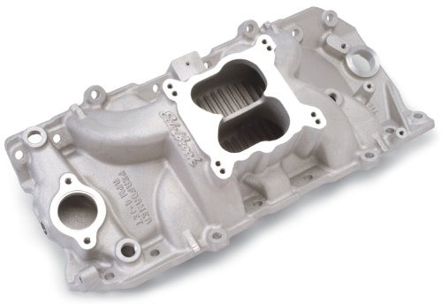 The Edelbrock Performer RPM Intake Manifold is the network of passages that direct air or air-fuel mixture from the throttle body to the intake ports in the cylinder head. It is designed especially for spread-bore carburetors but also works with the Edelbrock square-bore carburetor without adapter. The Performer RPM intake manifolds have a high-rise, dual-plane layout, with patented runner tuning and a 180 degree firing order. The Performer RPMs have larger plenums and runners to match the free-flowing exhaust, high-lift cams, and other modifications of a high-output engine. The factory composition-type embossed gasket also works satisfactorily. They are intended for high-performance street or competition engines that run from 1, 500 to 6, 500 RPM. This manifold produces incredible top-end horsepower. It delivers maximum power with a broad torque curve for high-performance street applications. This manifold has no provisions for exhaust heated or stock-style choke.