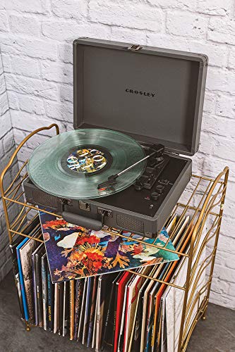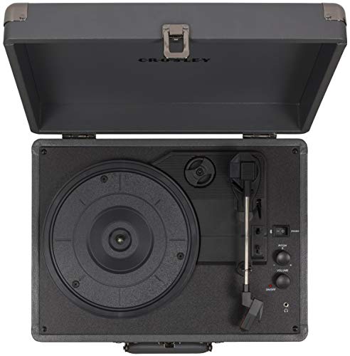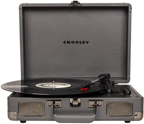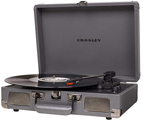 Encantador tocadiscos estilo maleta envuelto en vinilo.