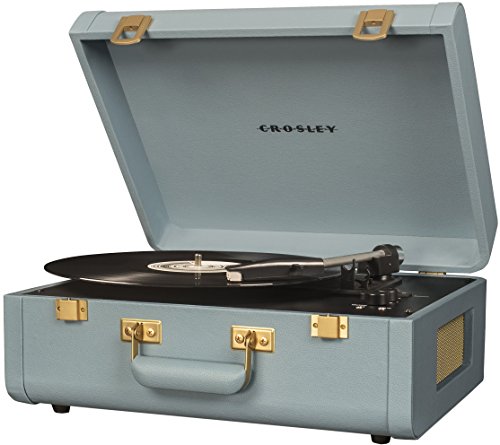 Diversify your vinyl investments with the portfolio three-speed record player from Crosley. This suitcase-style turntable Features built-in stereo speakers, pitch control and a moving magnetic cartridge to ensure quality sound in one easy-to-use package. A Bluetooth receiver allows you to stream digital music through the unit’s speakers, while RCA outputs let you customize your setup with the speakers of your choosing. (Compatible with NP5 replacement needle.)