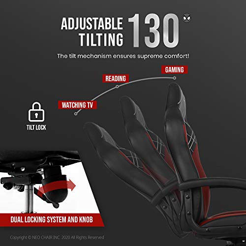 MÁS QUE UNA SILLA PARA JUEGOS 180 grados Reclinable y bloqueado (también conocido como Can you do this). 90 grados trabajando 130 grados descansando 160 grados viendo una película. Silla de oficina reclinable para dormir 180 grados . Función de inclinación y bloqueo para esta silla ergonómica de oficina. Fácil ajuste con palanca conveniente! ¡Disfruta jugando con la silla reclinable para juegos!