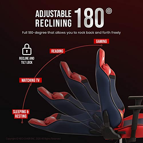 MÁS QUE UNA SILLA PARA JUEGOS 180 grados Reclinable y bloqueado (también conocido como Can you do this). 90 grados trabajando 130 grados descansando 160 grados viendo una película. Silla de oficina reclinable para dormir 180 grados . Función de inclinación y bloqueo para esta silla ergonómica de oficina. Fácil ajuste con palanca conveniente! ¡Disfruta jugando con la silla reclinable para juegos!
