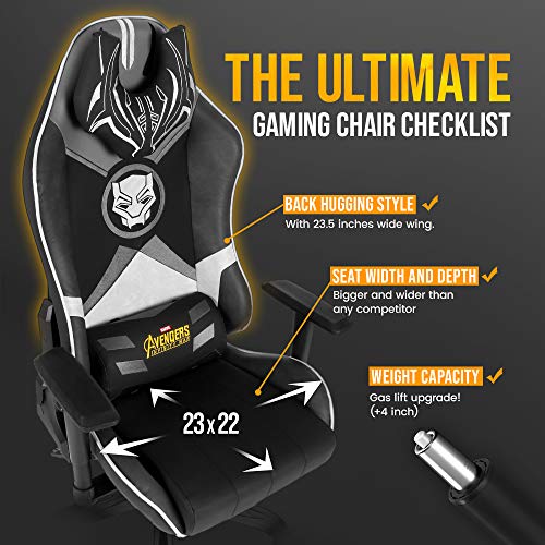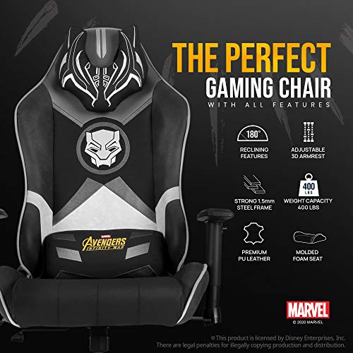 Calidad duradera: calidad aprobada por Marvel. Marco de acero con 0.059 in de grosor. Todo con revestimiento anticorrosivo. Silla de juego de piel sintética y carbono de alta calidad: resiste la corrosión, las manchas, el agua, la decoloración y los arañazos. Base de nailon ABS y ruedas de poliuretano de alta calidad. Todas las piezas están certificadas por BIFMA para esta silla reclinable y silla de oficina con respaldo alto.