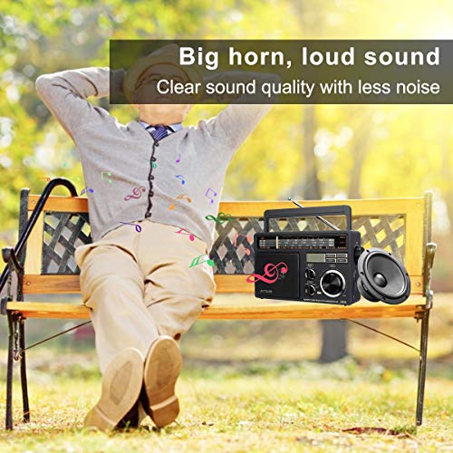 Radio AM FM portátil; 87 – 108 MHz FM; 520 – 1710 KHz AM; 6 – 18 MHZ SW; radio AM FM portátil con antena de extensión de 23.62 pulgadas; por favor, tire de la antena para obtener la recepción FM.