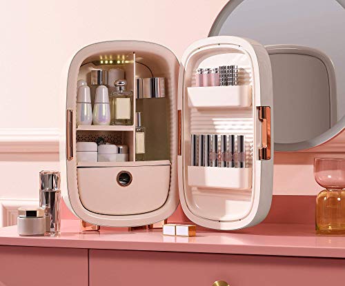 Diseño elegante: los hermosos colores y los detalles metálicos y el ribete se ven de moda en cualquier dormitorio, tocador, baño o mostrador. La nevera Beauty Skincare es perfecta para todos, linda para adolescentes y maquillaje moderno en todas partes.