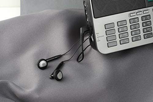 Reloj en tiempo real, 3 temporizadores de alarma con radio o hws (sistema de encendido humano) zumbador, temporizador ajustable de reposo y repetición, controles de tono (música/normal/noticias), con menú multifuncional y pantalla LCD más grande (3.3 x 2.3 in) con retroiluminación LED, función de silencio suave, pantalla editable de hasta 10 caracteres y amplificador de auriculares individual.