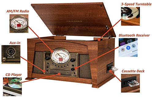Cuando se trata de melodías de moda y estética analógica, Crosley lleva más de 30 años trayendo música elegante a las masas. El Medley Entertainment Center es un sistema clásico Crosley 6 en 1 que está listo para reproducir toda tu colección de música desde el primer momento. Este sistema de tocadiscos cuenta con un reproductor de grabación de tres velocidades (33 1/3, 45, 78 RPM), reproductor de cassette, radio AM/FM, reproductor de CD, entrada auxiliar y un receptor Bluetooth para que puedas transmitir tu música digital a través de los altavoces estéreo incorporados. El gabinete de madera añade un toque nostálgico y cuenta con una tapa a juego con bisagra de metal para ayudar a mantener el polvo a raya. Los altavoces estéreo incorporados se sientan detrás de las parrillas de tela de inspiración vintage y se combinan perfectamente con el diseño retro. El Crosley Medley está listo para jugar! (Compatible con la aguja de reemplazo NP6)