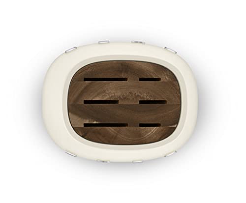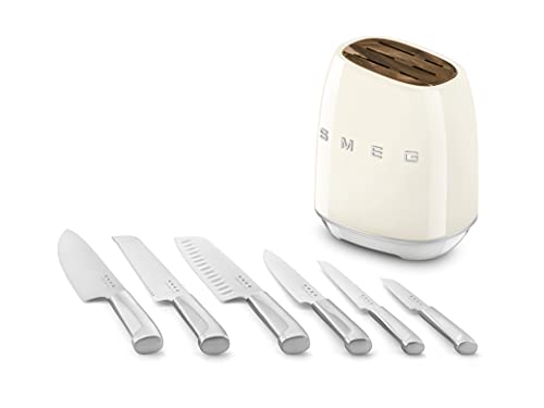 Fácil de limpiar: exterior de acero al carbono con recubrimiento en polvo en crema brillante para coordinar con otros aparatos de encimera SMEG, y los pies antideslizantes evitan que el bloque se deslice cuando retiras un cuchillo. Lavar a mano