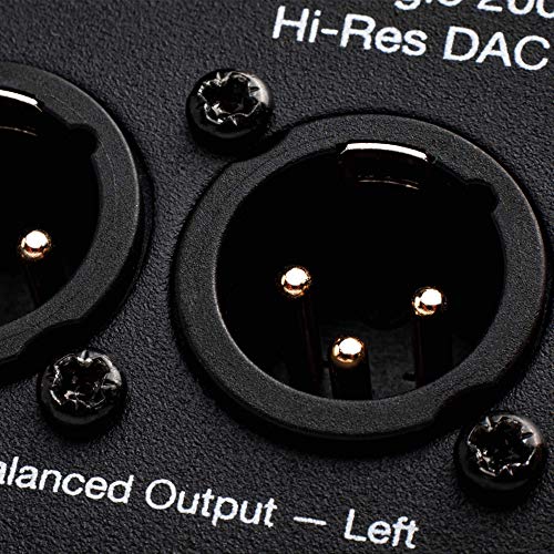 Especificaciones técnicas: Dual ESS ES9028Q2M DACs, respuesta de frecuencia de 10 Hz a 50 kHz (± 1 dB), consumo máximo de energía 12 W, relación señal/ruido > 115 dB (peso A), filtro digital: seleccionable (rápido – lento – retardo corto), dimensiones 2.0 x 8.6 x 7.6 pulgadas, peso 2.6 libras.