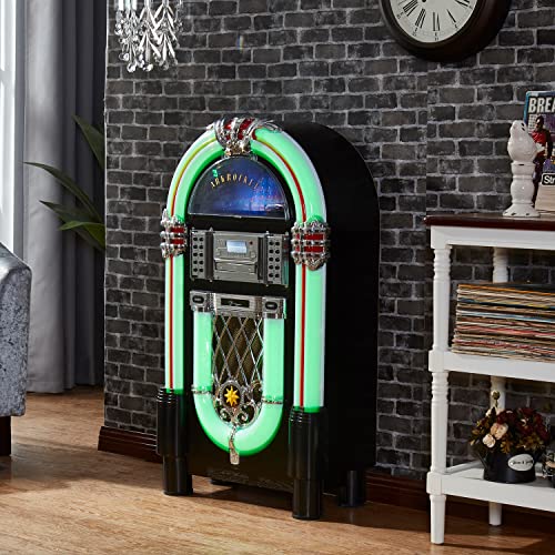 Versatile: This jukebox has a belt driven record player with auto-stop function, a USB port, MP3-compatible CD player, and a SD slot for music playback and recording function. A Bluetooth interface also allows for music playback from a smartphone, tablet or laptop.