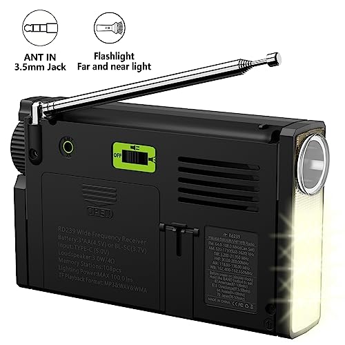 Alimentación múltiple Alimentado por 3* pilas AA o BL-5C para comodidad al aire libre; La entrada TYPE-C proporciona una fuente de energía alternativa. Con radio pequeña de bolsillo con conector ANT.