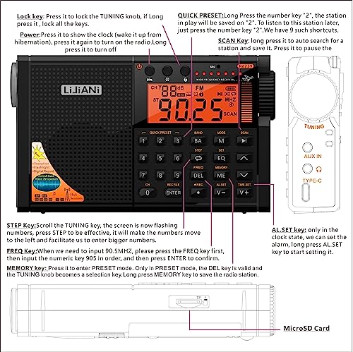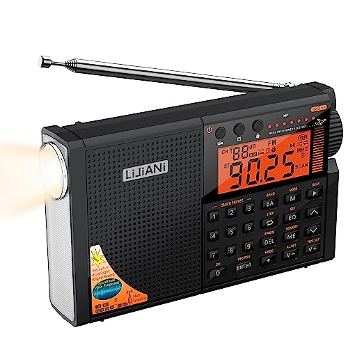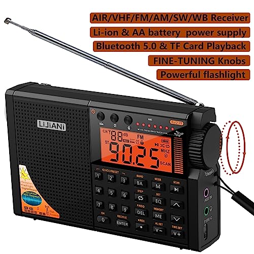 RADIO Airband de 6 bandas: AIR/VHF/AM/FM/onda corta/radio de bandas meteorológicas. Esta es una radio pequeña de bolsillo, la mejor sensibilidad para una mejor recepción y una señal estable, con grabación digital, despertador, temporizador de apagado, lámpara de lectura, linterna, Pantalla retroiluminada y botones retroiluminados.