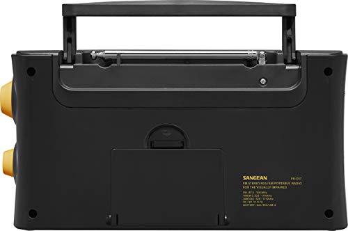 La radio portátil Sangean PR-D17 AM/FM fue diseñada con especial consideración para aquellos con discapacidad visual. Se han implementado cuidadosamente indicaciones de voz prácticas, grandes perillas de control giratorias amarillas de alto contraste y botones preestablecidos con símbolos en relieve, lo que mantiene la operación en PR-D17 simple e intuitiva. Cada botón pulsado es seguido por un mensaje de voz para guiar al usuario a través de cada paso del camino, tal como navegación de la estación, configuración del reloj de alarma, información de la estación de radio, hora y otros ajustes.