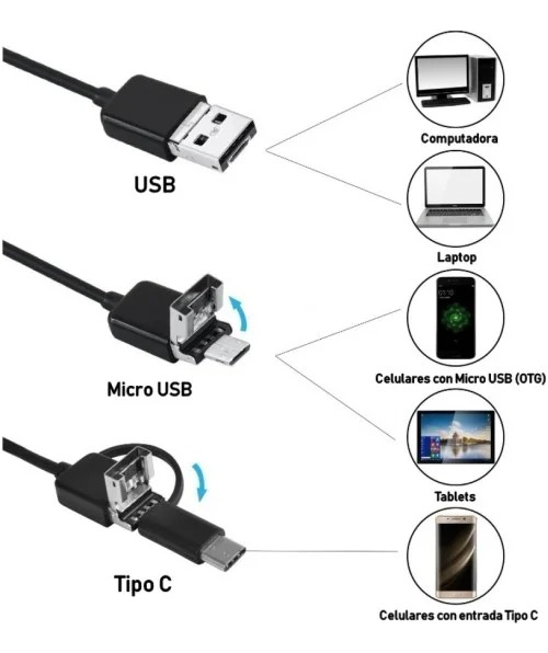 Herramienta indispensable para tecnicos y hobbistas que necesitan poder de forma simple y efectiva anlizar Motores, Caños de Agua, Conductos, Componentes electronicos o cualquier otro elemento de dificil acceso donde se requiere precision, luz y alcanzar objetos dificiles de ver.