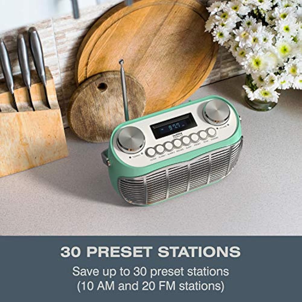 CLASSIC STYLING: The Detroit Retro Radio Alarm Clock from Audible Fidelity combines timeless motor-city vintage design with FM/AM digital radio technology performance, for a great addition to kitchen sides or bedroom tables. The accessible design houses large buttons and a clear, easy to read LCD display with station info.