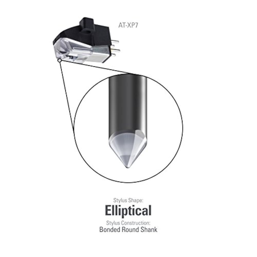 The AT-XP7 is specially designed for the needs of DJs. This cartridge features a highly-rigid polyphenylene sulfide (PPS)/glass fiber body and a tracking force of 2 to 4 grams. It also offers a powerful output level of 6.0 mV, and its 0.3 x 0.7 mil elliptical bonded stylus tracks the record groove with high accuracy for outstanding audio reproduction. Plus, the cartridge is specifically designed to provide maximum visibility of the stylus tip.