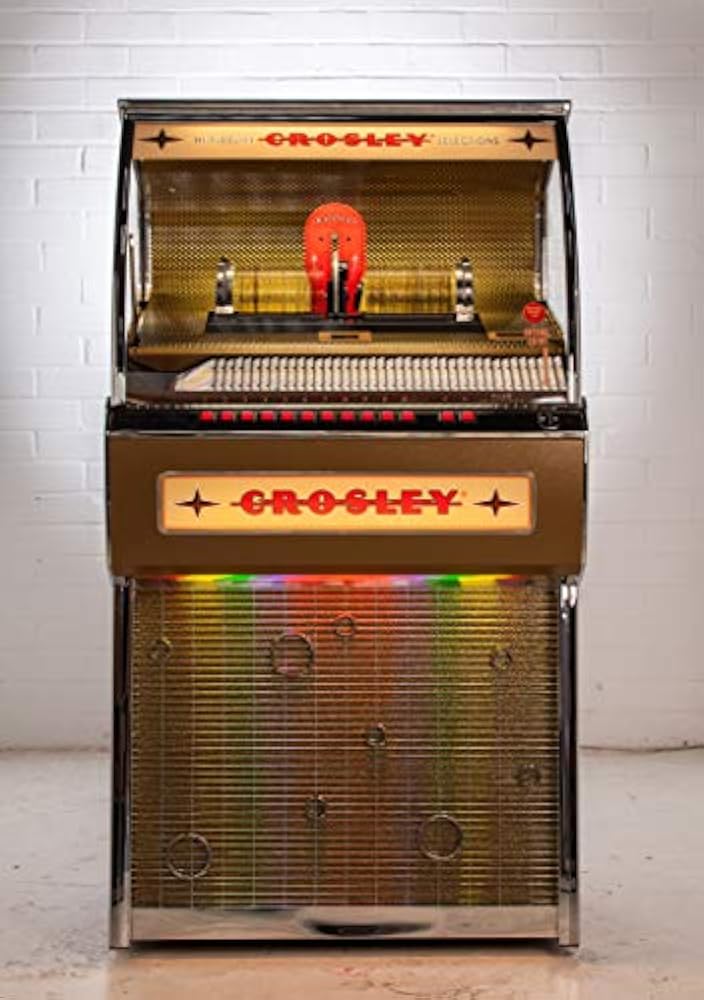 El tamaño completo Crosley Rocket Jukebox vida hasta su tocayo canción por Jackie brenston y el Delta gatos. Esta Jukebox irradian True Rock ‘n’ Roll sonido y estilo. El mecanismo 80-cd con sus canciones favoritas y siente la potencia de la carga hasta 300 W Stereo Amp verter fuera de los altavoces. Este tamaño completo Jukebox crea un clásico vibe con su forma clóset, fuente, auténtico y clásico florescent iluminación con efecto arco iris. Este Rocket Jukebox es tan bonito como la Oldsmobile que inspirado en la canción. En 1920 Powel Crosley fundó la empresa que fue radiodifusión y la mercado de masas de fabricación en todo el mundo, con un simple Radio de partida, meticulosamente crafted con Obsessive detalle y precisión, y una medida de consideración de la portafolios. Estos alta ideales han servido la empresa bien para más de 90 años, y viven en la más reciente adición a la familia. Crosley muebles establece un nuevo estándar para la innovación, la función, y acabados en la fabricación de muebles de Value-priced. Con orgullo ofrecen durable muebles Productos con chapa de madera dura y con ricos acabados compuestas de construcción en una multitud de estilos. Dimensiones: 30,75 W x 30.75d x 55.5h en.. Bluetooth. 80-disc mecanismo de cd y flip visualización título rack. Amplificador digital D4. 4 canales, 60 W RMS por canal. Cono de gama media 2 tweeters, 2 x y 1 x 12-in. individual altavoz de bajos. clásico de luz fluorescentes con efecto arco iris. Conecta hasta 6 Altavoces externos. Shuffle Play. Mando a distancia. Mueble de madera en acabado de madera de roble. Incluye garantía del fabricante Defecto.
