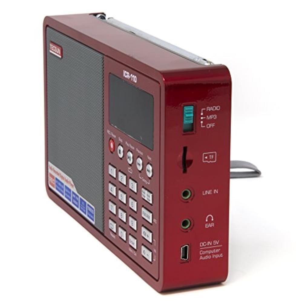 Una última innovación de tecsun, el icr110 viene en un tamaño compacto y portátil, pero está repleto de funciones y características. Mientras Set en modo de MP3, usted puede reproducir música desde su computadora/laptop a través de una conexión USB o desde una tarjeta micro SD lector de instalado en el integrado; para escuchar las noticias locales, actualizaciones de tráfico, muestra de conversación, eventos deportivos, música popular y por igual, simplemente Switch a modo de radio y sintoniza con ATS; aún mejor, la icr-110 también está equipado con una grabadora digital interna que se puede utilizar para grabar tus programas de radio favoritos con un solo dedo Touch, y estarán guardados en una tarjeta Micro-SD para escuchar en el dispositivo más tarde, mientras que el modo de radio se establece en MP3 o transferir a un computadora para otras aplicaciones de audio como Windows Media Player, iTunes y etc.