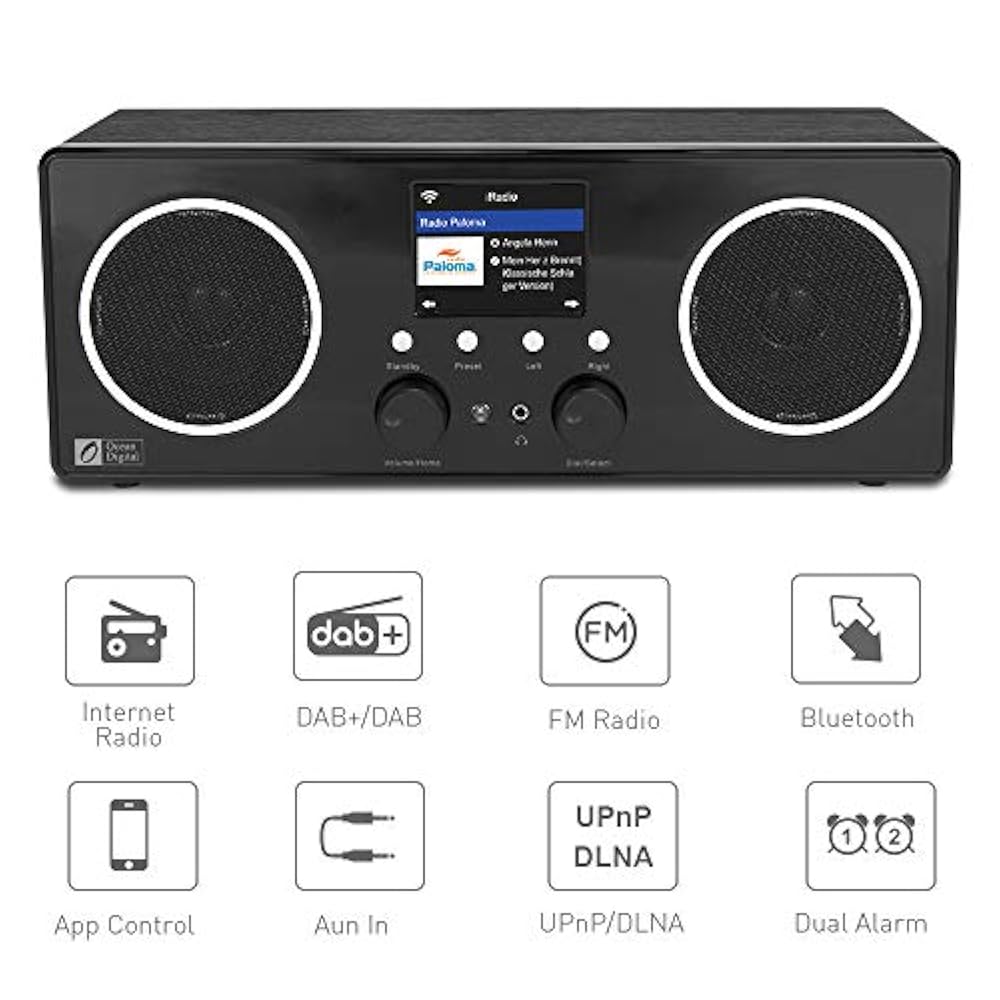 – Compatible con Bluetooth y UPnP/ DLNA: Transmite audio Bluetooth para reproducir en la radio o desde un servidor compatible con UPnP/DLNA a través de la red de Internet.