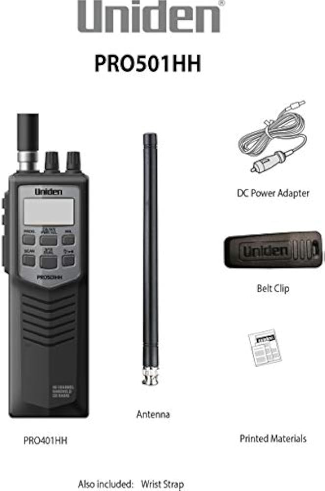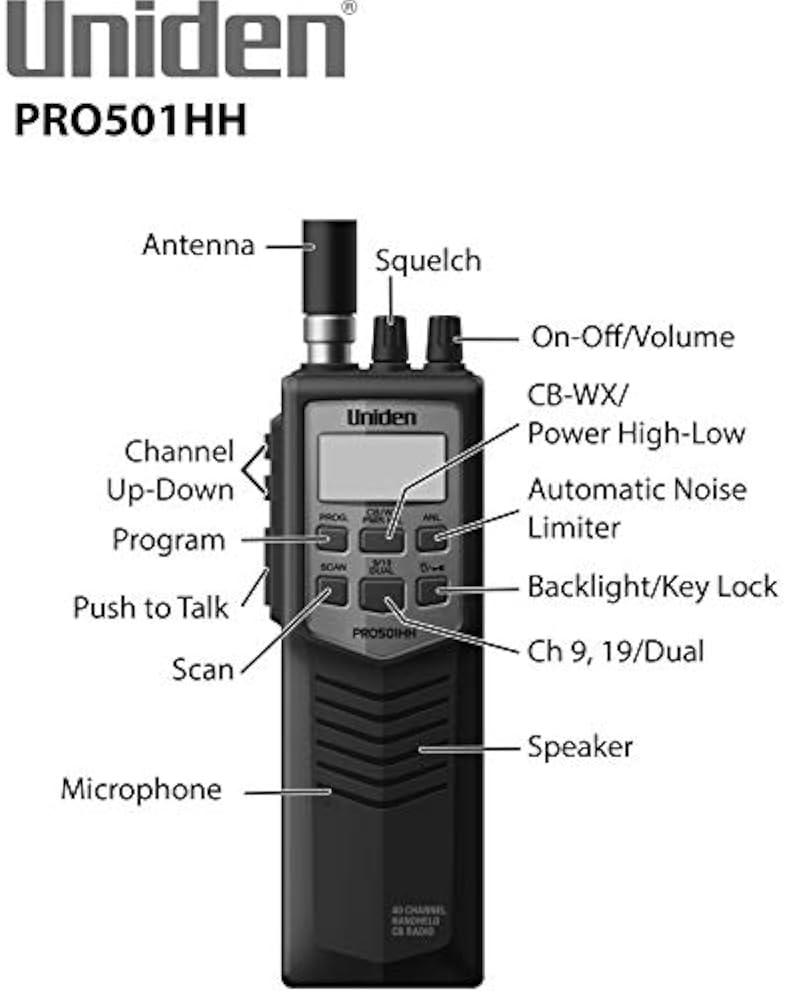 The Uniden PRO501HH includes the CB features you need every day 40 CB channels let you tune in to the action channels or break away to do your own thing Noaa Weather keeps you informed when severe weather threatens And the dual watch feature lets you talk on one channel while keeping an ear on another Channel you are interested in Use high power to punch out the strongest signal or low power to preserve those batteries Remember Uniden is the name in CB radios